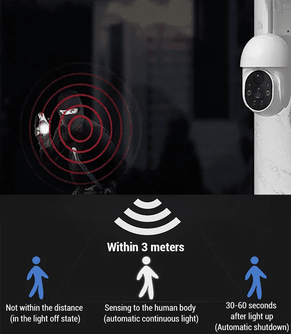 The realistic-looking simulation surveillance camera is enough to scare away criminals and protect your property safety. Whether it is day or night. the street light can play an excellent deterrent role and provide all-round protection.