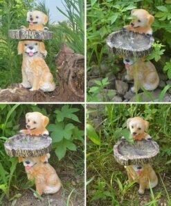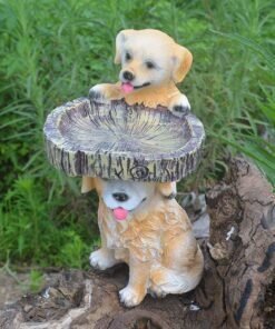 Two delightfully detailed Golden Retrievers hold a wooden-look basin for your feathered friends. Their doggie smiles and pink tongues add character to their expressive faces. You’ll love it. and the birds will love too. with a 1¼ basin for splashing around.