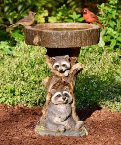 You won’t mind this pair of raccoons in your yard! In fact. our Resin Raccoon Birdbath will attract birds. butterflies and other desirable creatures to come bathe or hydrate.