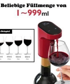 Refillable quantitative wine dispenser and electric wine aerator, adjustable 1-999ml wine dispensing settings; automatic stop of dispensing after the quantity dispensing wine is released, don’t worry about the cup overflowing.