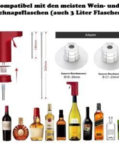The wine dispenser is suitable for different bottle openings with three different sized adapter silicone stoppers. The diameter of silicone stoppers is 18mm-20mm, 20mm-23mm (other caliber bottle mouths are not suitable). Retractable straw to fit 165mm-385mm glass height; can serve sake, whiskey pump, shochu, fruit wine, rice wine, spirits and wine.