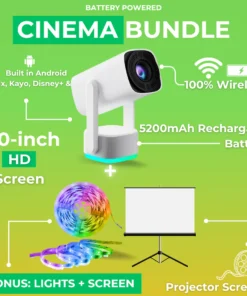 The PortaView360 WIRELESS, a next-generation upgrade to the PortaView360 PRO, brings true freedom to your viewing experience. Featuring a built-in 5200 mAh battery, upgraded 450 lumens brightness, and 4K resolution, it delivers vibrant visuals anywhere — no power cord required. Designed for travel, backyard movie nights, and on-the-go entertainment, it’s the most portable way to project your world.