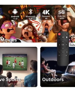 Experience the freedom of streaming your favorite content in any room of your home, at any time that suits you. Our portable projector features a 180° rotating design, allowing you to point and stream from any angle, whether it’s the ceiling or the wall. Perfect for the living room, bedroom, theater room, outdoors, or any space in need of a quick and easy home theater upgrade.